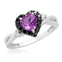 10k White Gold Heart Shaped Amethyst with Round Black and White Diamonds Ring Size 9