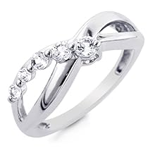 Dazzling addition to any fine jewelry collection. This journey ring is crafted of fine sterling silver has high polished finish and features created white sapphires.[]